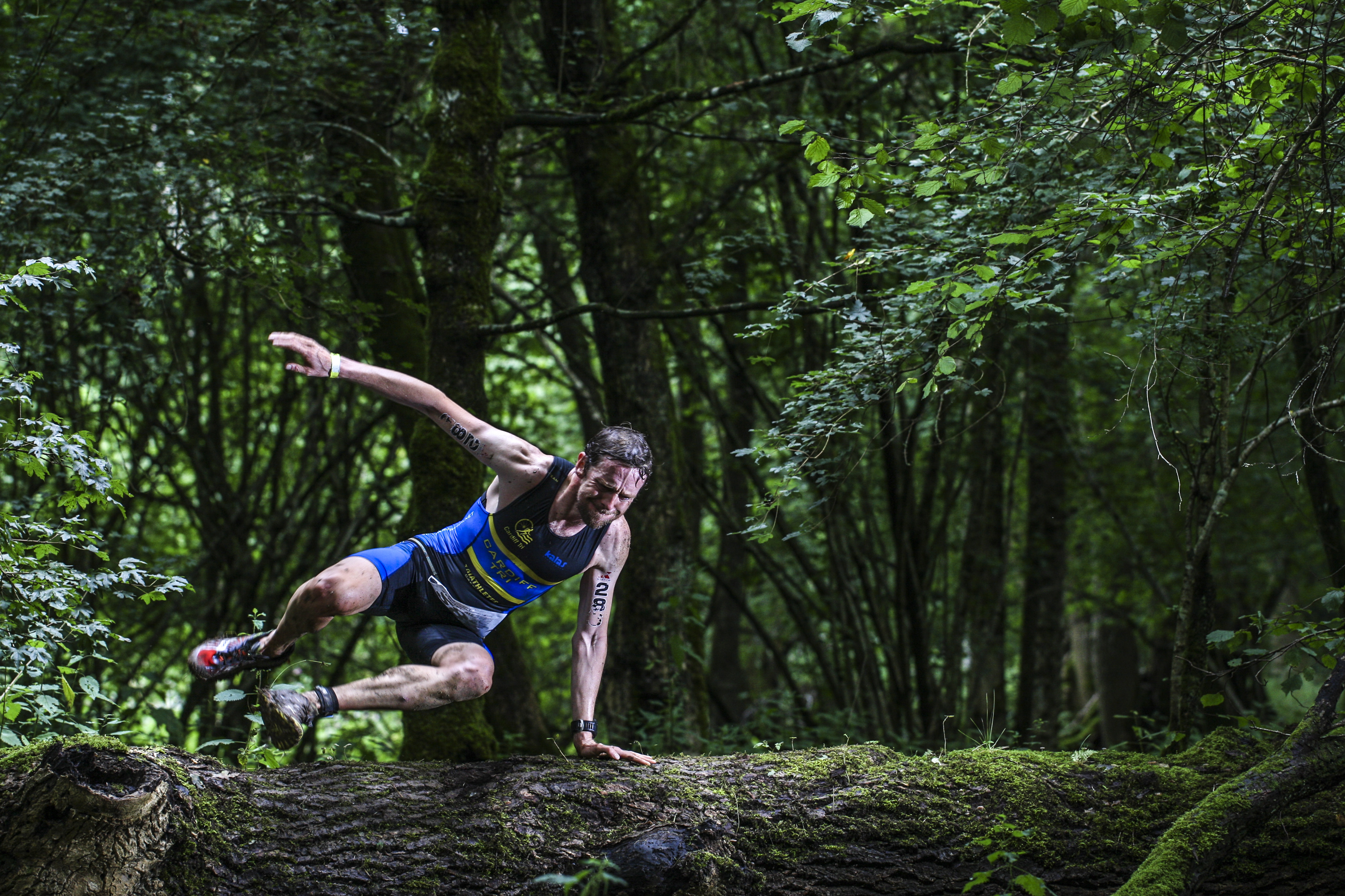 I had a lovely swim. There were no nerves before the start whatsoever, as I stood around chatting to Jamie, a graduate of our medicine programme in Swansea and now a working doctor that I hadn’t seen for a while. The swim in Vachery pond in XTERRA England is always nice and relaxed for some reason. My race plan was to swim easy (which isn’t really “easy” but at a pace that saves my shoulders for later work), bike smooth and then run. I.e. RUN! Like someone’s chasing you. Which they were. Over large ditches, through bogs and over fallen oaks. I would also be doing some chasing. Hunting.