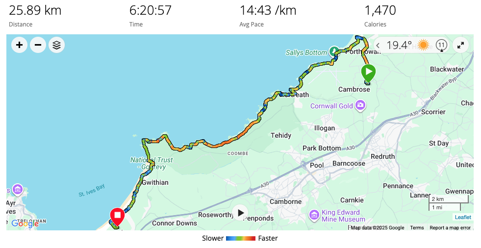 This might have been the last day of sun. It warmed and partly dried the tent as we woke. A lad we had camped near was solo walking around the perimeter of Cornwall and breakfasted to leave at the same time. He has walked around 150miles and is making his way north up the coast. Today’s walk would be easy for us, he said. After St Ives would be tough but Lands End and the Lizard will be easy.